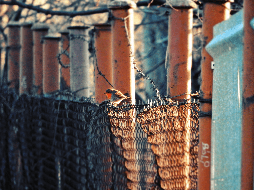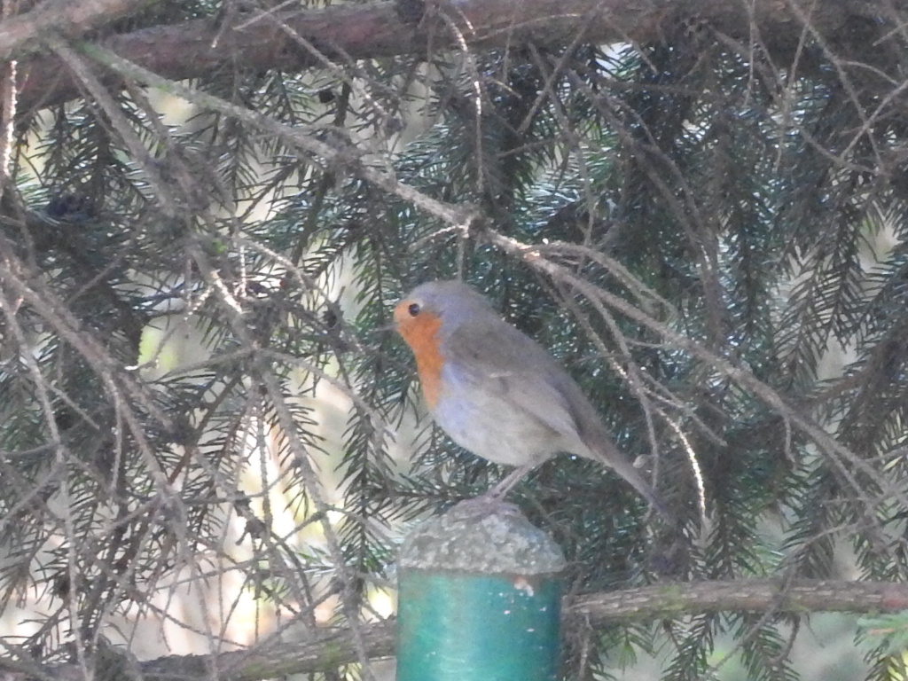 Rudzik jest szary i ma pomarańczową plamę na piersi i głowie.