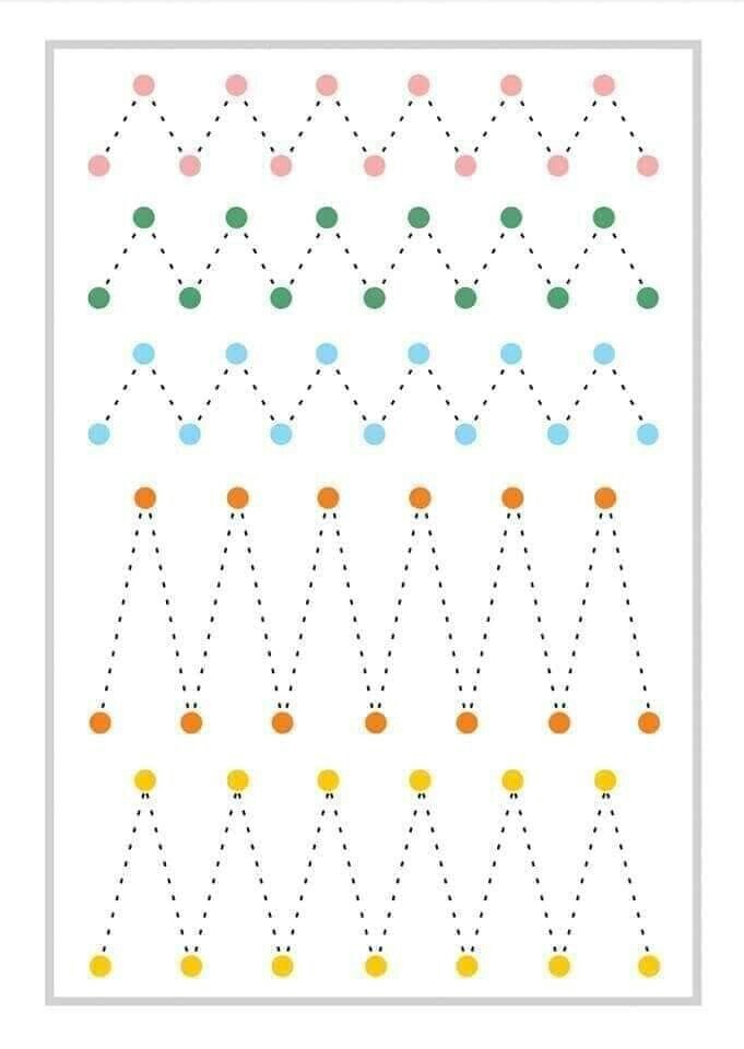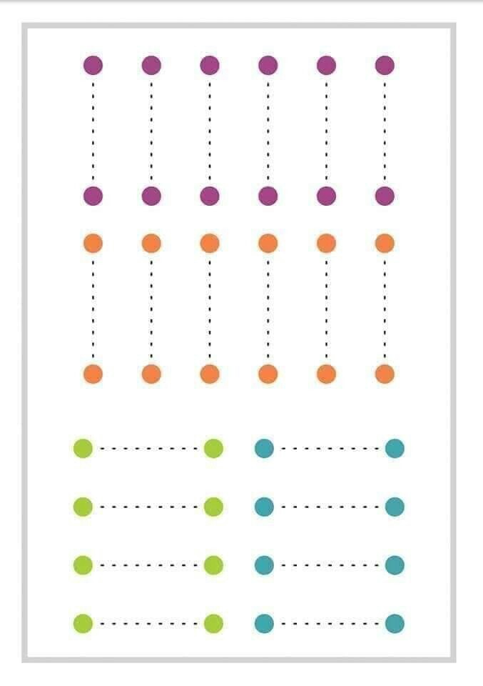 Połącz kropki w proste szlaczki, dobierz kolory.