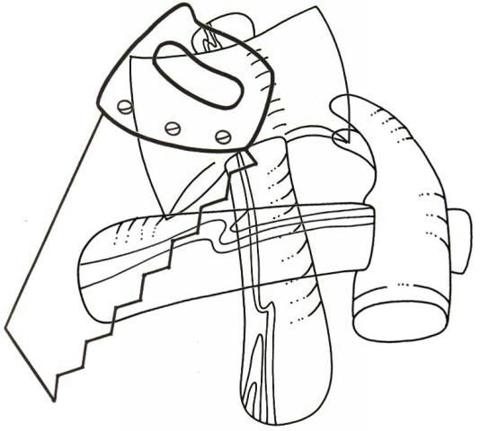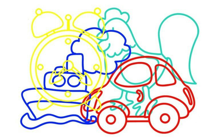 Polecenie: znajdź wszystkie ukryte na rysunku kształty. Obrysuj każdy kształt kredką. Nazwij kształt.