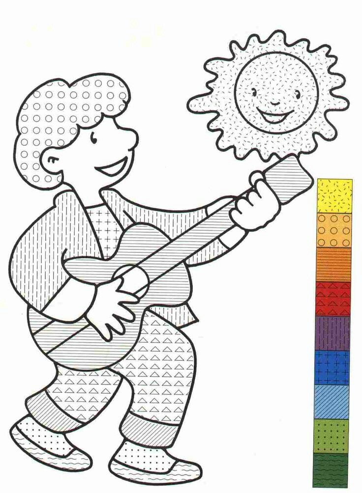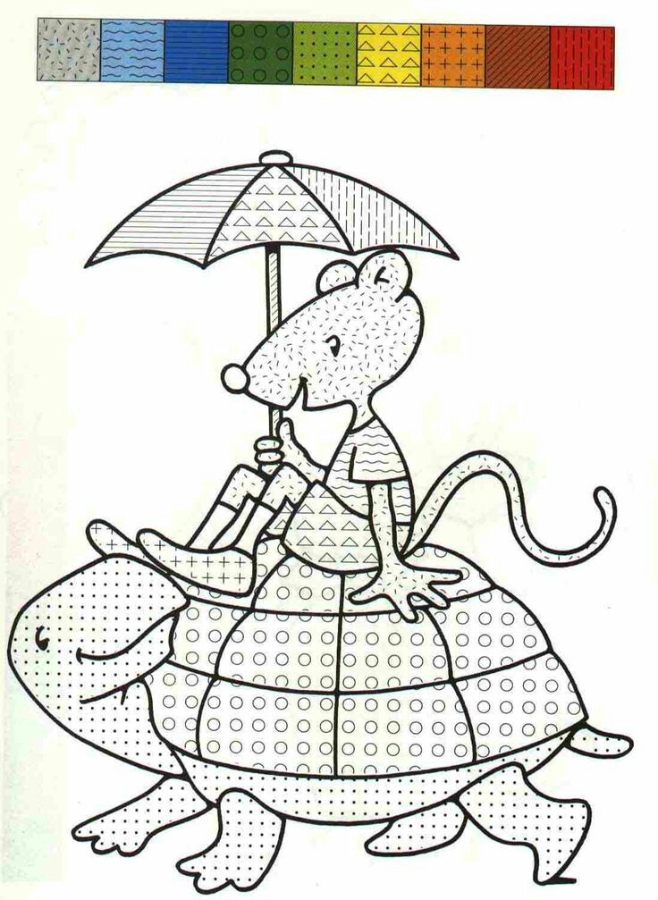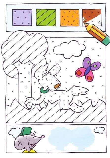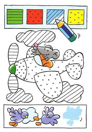 Polecenie: przyglądaj się uważnie i pokoloruj kolorowanki według podanych wzorów.