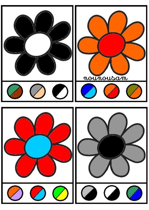 Rozpoznaj kolory, dopasuj, przypnij klamerkę od bielizny we właściwym miejscu na kartach: