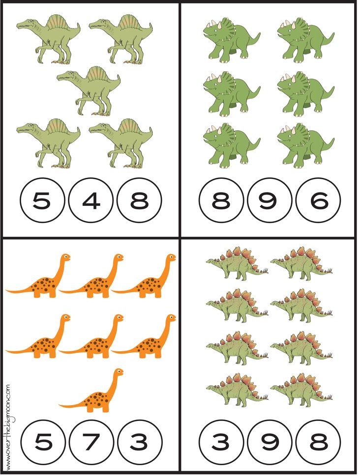 2. Policz i zaznacz właściwą liczbę dinozaurów.