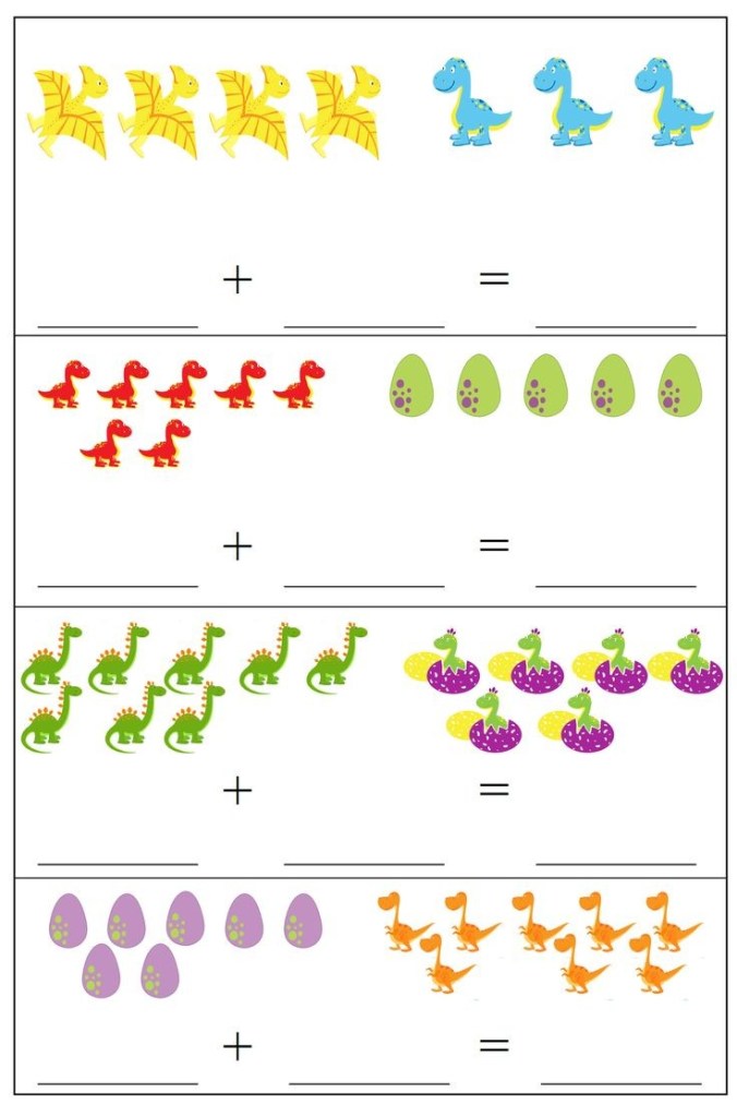 5. Segregowanie dinozaurów (figurki), przeliczanie, dodawanie.