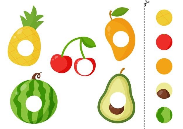5. Dopasuj kolory i wzory do odpowiednich owoców.