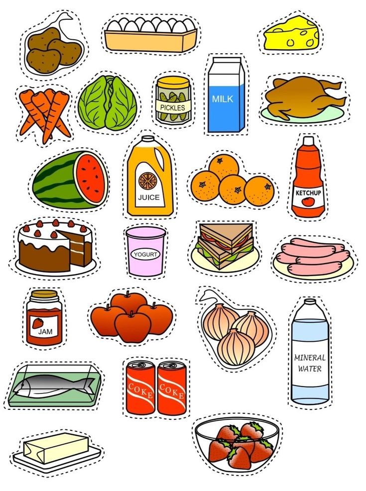 2. Wytęż wzrok i znajdź arbuza. Spróbuj go wyciąć. Czy rozpoznajesz inne artykuły na obrazku? Wymień kilka.