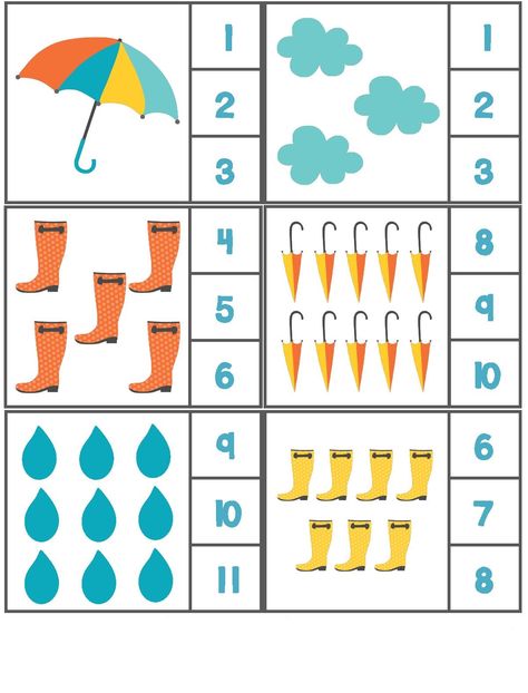 - „Psoty i figle w deszczu” – zabawa dydaktyczno-ruchowa . razem z dziećmi ustawia w rzędzie krzesełka i oznajmia: Musimy je ponumerować. Liczymy od początku, czyli stąd: jeden – pierwsze krzesełko (przykleja karteczkę z cyfrą 1), dwa – drugie krzesełko itd . Po oznaczeniu cyframi wszystkich przeliczają, ile jest .Grając na tamburynie, dajemy znak, że dzieci mogą biegać po całej sali . Po chwili przerywamy grę i wyznaczamy, na którym usiąść ma krześle. Pytamy, jaki jest numer jego krzesełka, przelicza. Zabawa zaczyna się od początku .