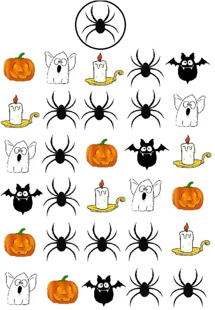 Piszemy na karteczkach nazwy różnych strasznych stworów (nietoperz, czarownica, wampir, czarny kot, żaba, pająk, duch). Kolejno dzieci losują karteczki i pokazują jak się zachowuje taki stwór, oczywiście nic nie mówiąc. Zadaniem pozostałych dzieci jest zgadnięcie, jaki to stwór.