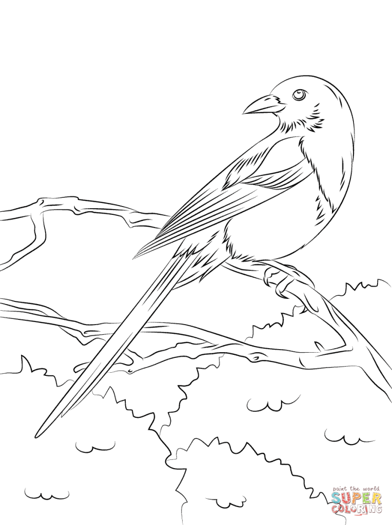 Pióra na skrzydłach sroki, z boku są błyszczące i czarne, spód ciała biały, nogi czarne. Głowa jest cała czarna wraz z dziobem.