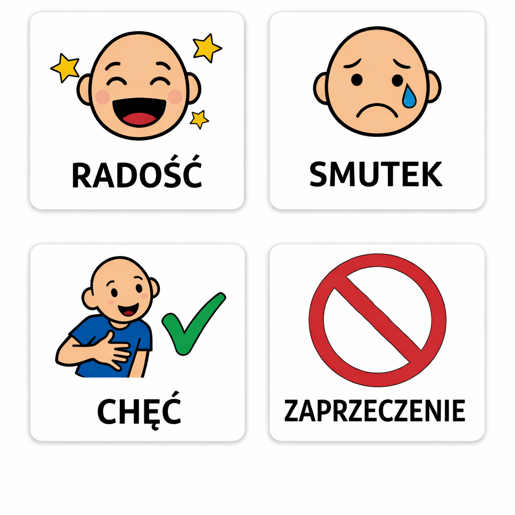 ✔️ Piktogramy wyrażeń (radość, smutek, chęć, zaprzeczenie)